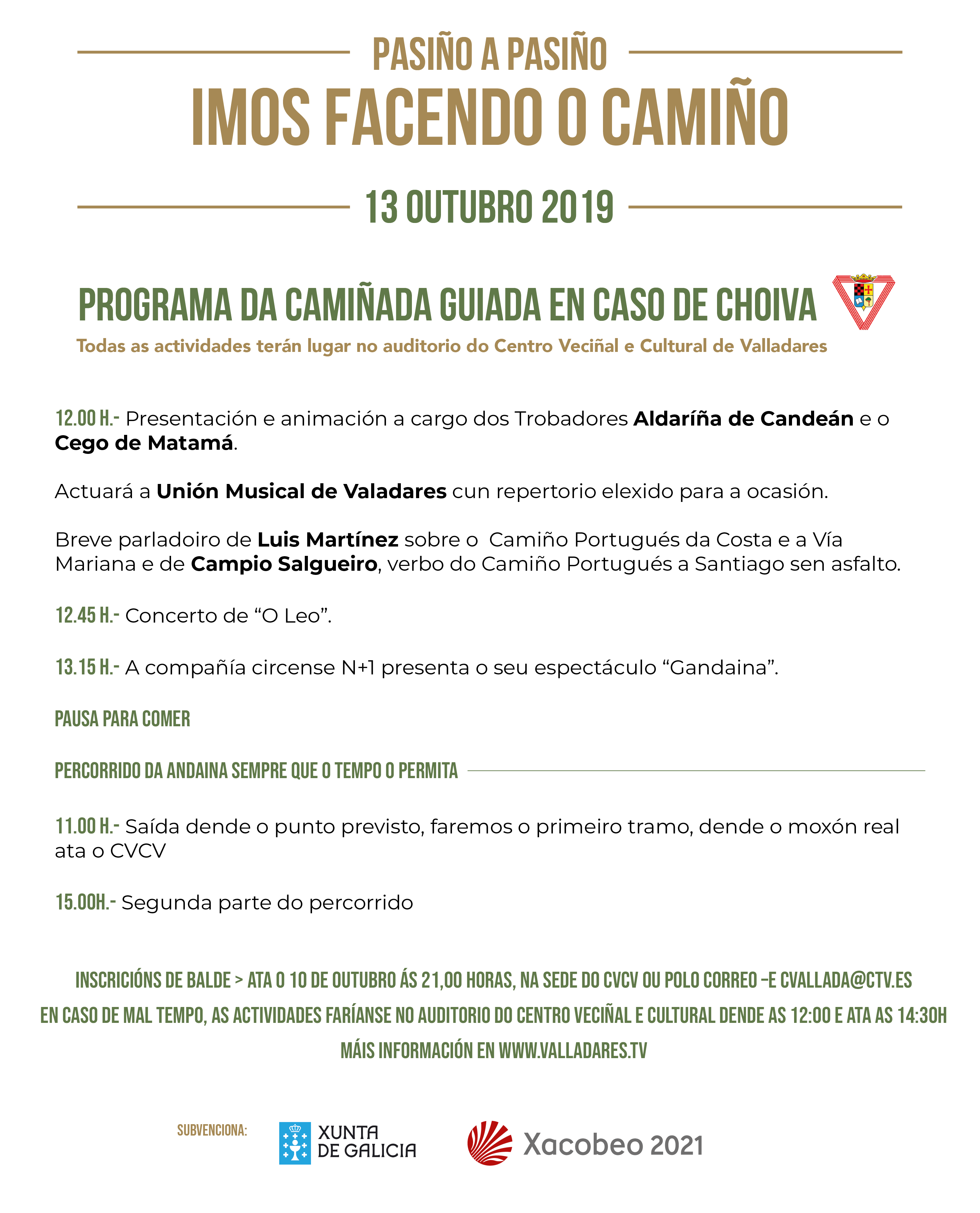 Baixo o título 'Pasiño a pasiño imos facendo o camiño a Santiago' os veciños de Valadares recrearon o domingo día 13 de outubro o treito parroquial deste roteiro xacobeo, unha variante do Camiño Portugués do Norte, que pasa por varios dos espazos naturais máis fermosos desta parroquia.